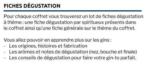 ➜ Soit 18 gins différents au total sur 3 mois répartis en plusieurs thèmes vous permettant de tout apprendre sur l’univers des spiritueux :