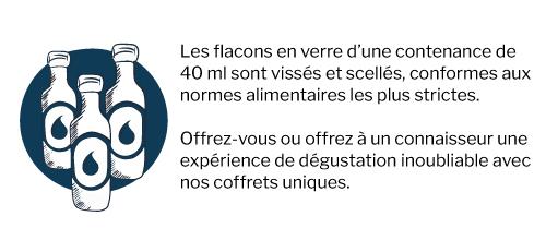 Tandis que la plupart des dégustations sont proposées avec 25ml, nous avons choisi de proposer des flacons de 40ml,