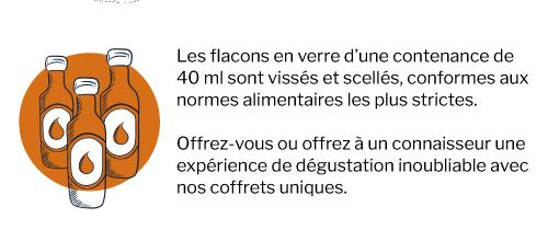 Tandis que la plupart des dégustations sont proposées avec 25ml, nous avons choisi de proposer des flacons de 40ml,