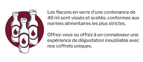 Tandis que la plupart des dégustations sont proposées avec 25ml, nous avons choisi de proposer des flacons de 40ml,