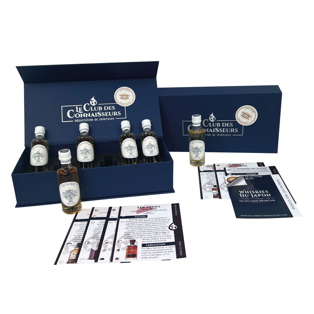 Ce coffret Whiskys du Japon Premium, met à l’honneur 6 whiskys du pays ayant atteint le plus haut niveau d’excellence. Un coffret pour les amateurs de whisky japonais exigeants, en quête de plus de profondeur et de finesse dans leur dégustation nippone.