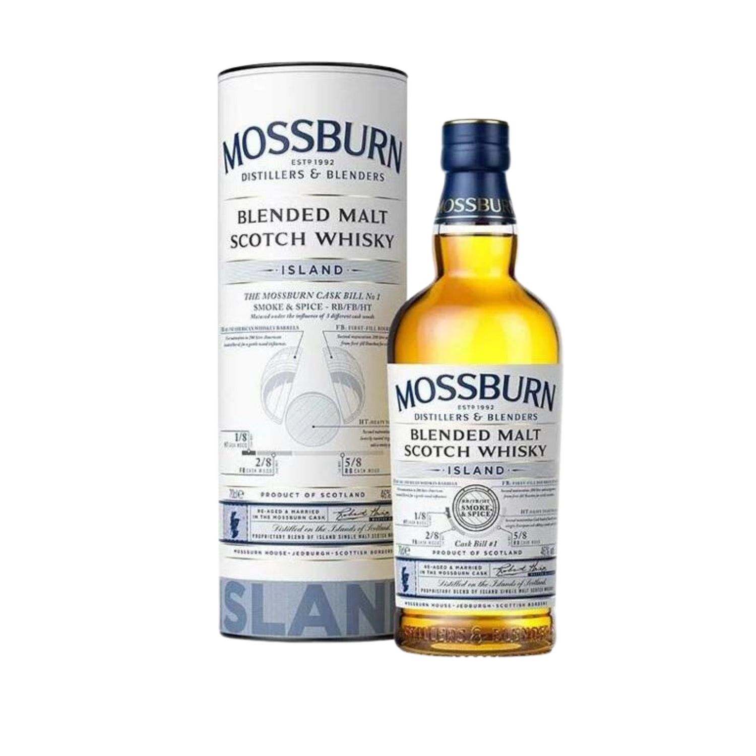 Le whisky Mossburn Island cask bill n°1 est issu d’un assemblage de single malts distillés sur les différentes îles écossaises. il est d’abord vieilli dans des fûts de chêne américain puis affiné dans 2 types de fûts conçus par la distillerie, l’un donnant des notes épicées l’autre fumées..