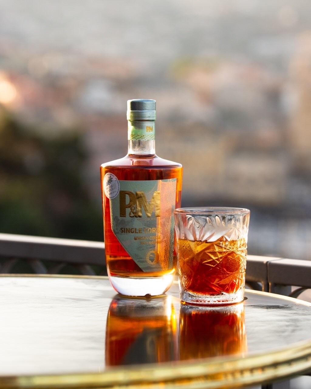 PM est une marque de whisky corse née de la collaboration entre la brasserie Pietra et le Domaine Mavela, deux institutions emblématiques de l’île de Beauté. Leur gamme de single malts, entièrement élaborée en Corse, reflète l’identité insulaire à travers des expressions telles que le PM Signature, le Tourbé ou le Red Oak. Distillés à partir de wash de bière Pietra, ces whiskies sont vieillis en fûts de chêne français ayant contenu des vins corses, conférant des arômes riches de fruits secs, d’épices et de notes boisées. PM incarne l’alliance du terroir corse et du savoir-faire artisanal, offrant des spiritueux authentiques et raffinés.